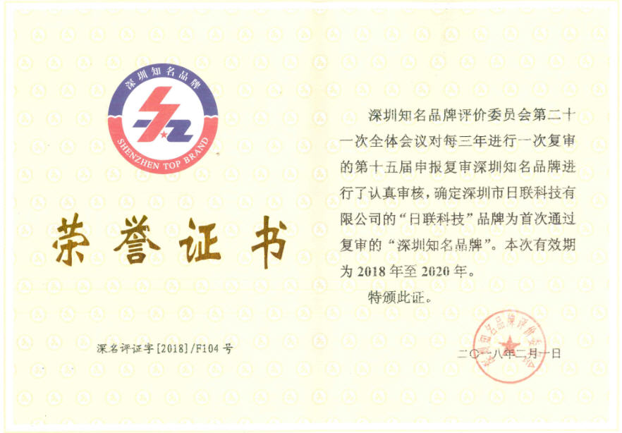 日聯(lián)科技自2017年3月28日啟動的第十五屆“深圳知名品牌”評價活動開始向評價委員會進行申報,評價委員會基于公司持續(xù)的卓越創(chuàng)新能力、科研能力、廣闊的市場前景及經(jīng)過行業(yè)專家評價和品牌價值評估、評價委全體會議審議評選、深圳市公證處現(xiàn)場公證等程序,繼續(xù)授予日聯(lián)科技“深圳知名品牌”榮譽稱號。