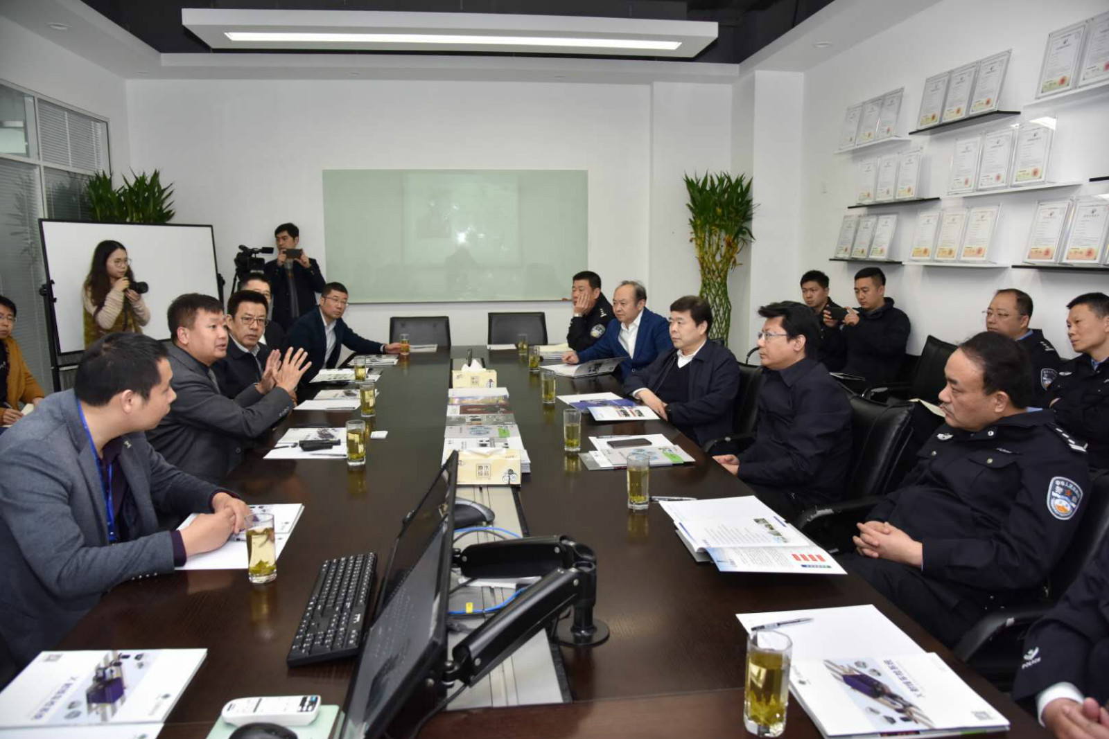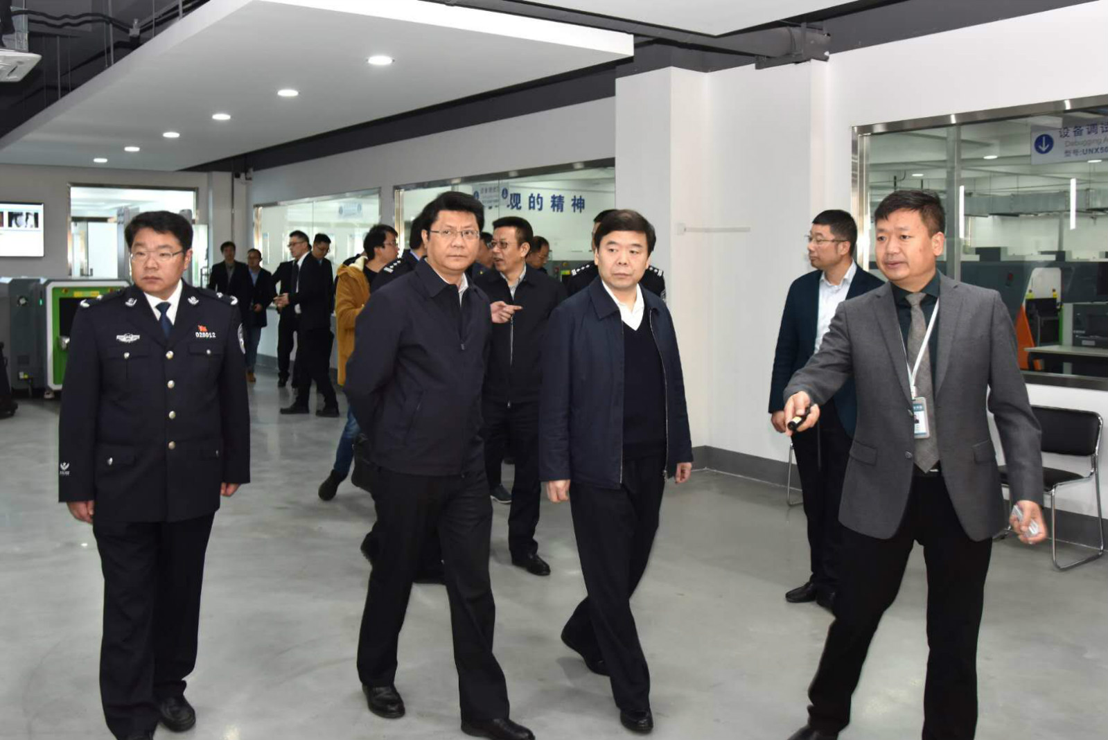 謝書記一行在日聯科技董事長劉駿博士的全程陪同下參觀走訪了安檢物聯平臺應用展廳、生產車間以及技術研發等部門,領導們對無錫日聯園區的基礎建設及產品應用研發上所取得的成果表示肯定。