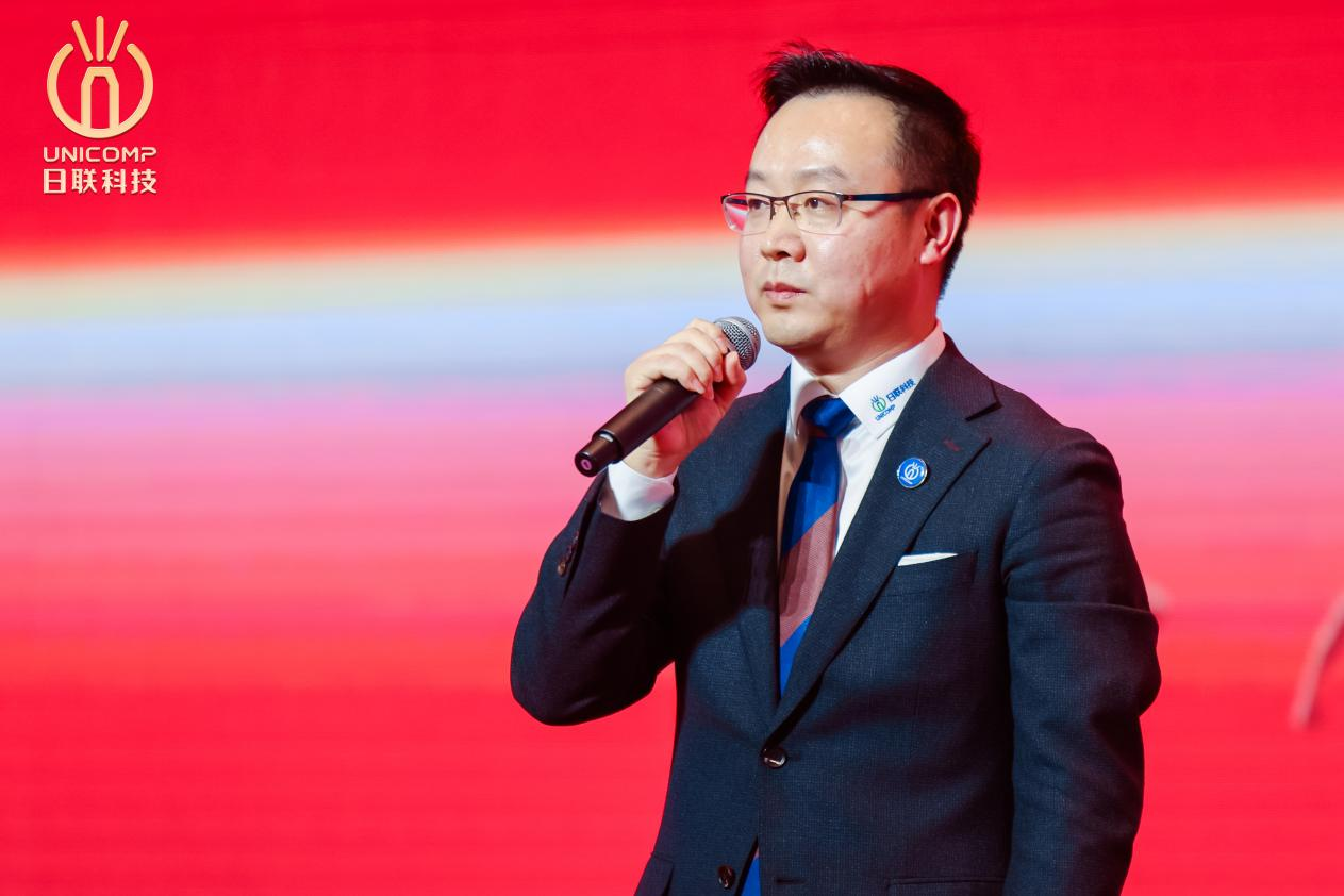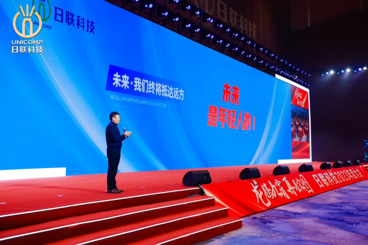 劉駿董事長在年會上與員工們共溯日聯科技夢想的起點,暢談實現成就背后的堅固基礎。他強調了對市場開拓的戰略布局,并對年輕一代的創新潛力表達了高度贊許,攜手展望企業可持續發展的輝煌未來。