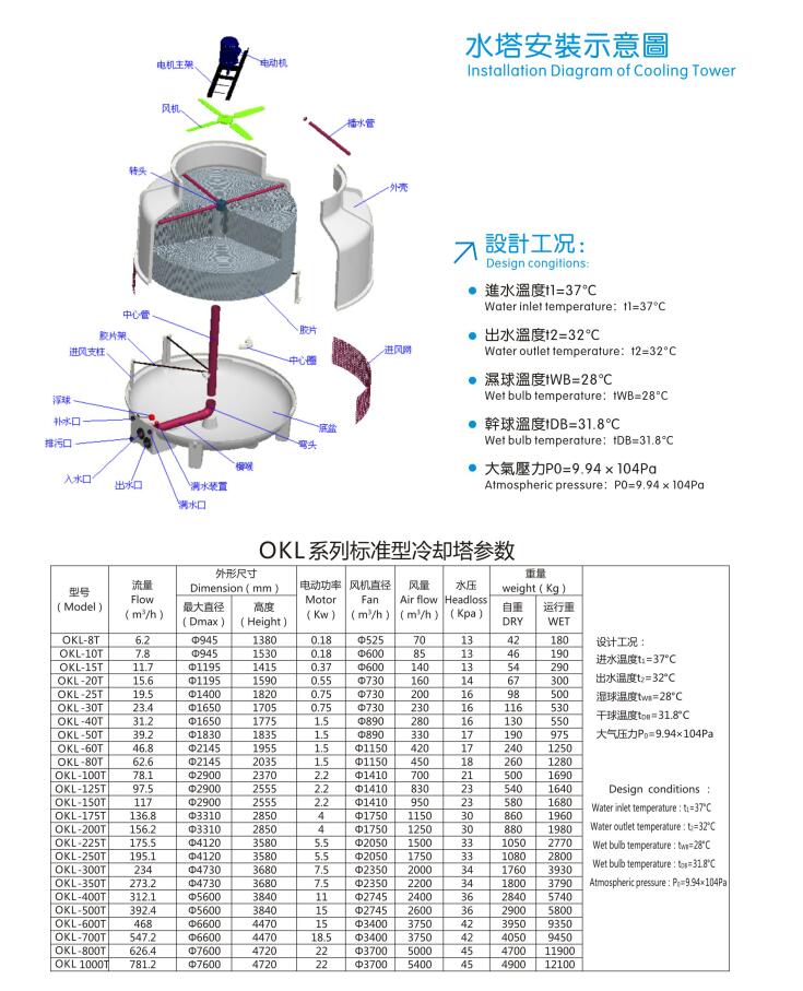 ● 采用最新技術(shù)設(shè)計,漂水少、噪音低、易保養(yǎng),冷卻塔構(gòu)件精心制作,堅固耐用,冷卻效果良好;
