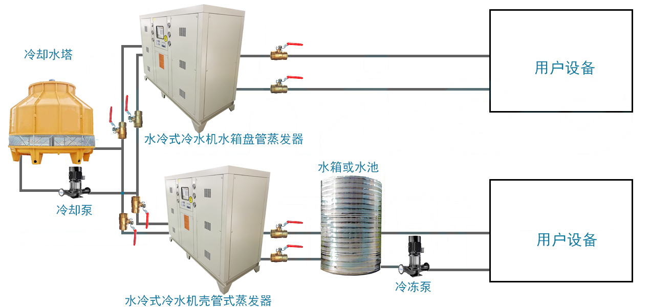 1.歐科隆水冷箱式冷水機(jī)系統(tǒng)方案簡(jiǎn)易圖:
