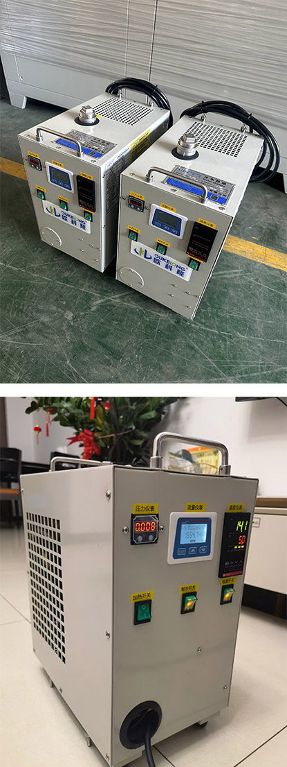 本案例為制冷量200W左右的微型高低溫液冷機(jī)組,可以制冷到5度,又可加熱到80度,應(yīng)用于車載測(cè)試使用。